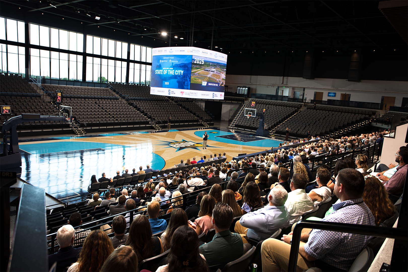 Innovation Mile is not just another development; it’s a transformational project designed to create a “work, live, play, engage, and learn” community to foster sustainable economic growth for Noblesville and the region. Backed by the city’s economic impact study, The Arena at Innovation Mile alone is projected to generate over $2 billion in new spending across the next 30 years, catalyzing reinvestment and opportunity throughout the area. The Arena, boasting a $93 million investment and spanning 123,000 square feet, offers 3,400 fixed seats and 100 suite seats—if the floor is configured for events, can welcome up to 4,200 guests. Also impressive, as Mr. Jensen added during his address, the project was completed on-time and under-budget!